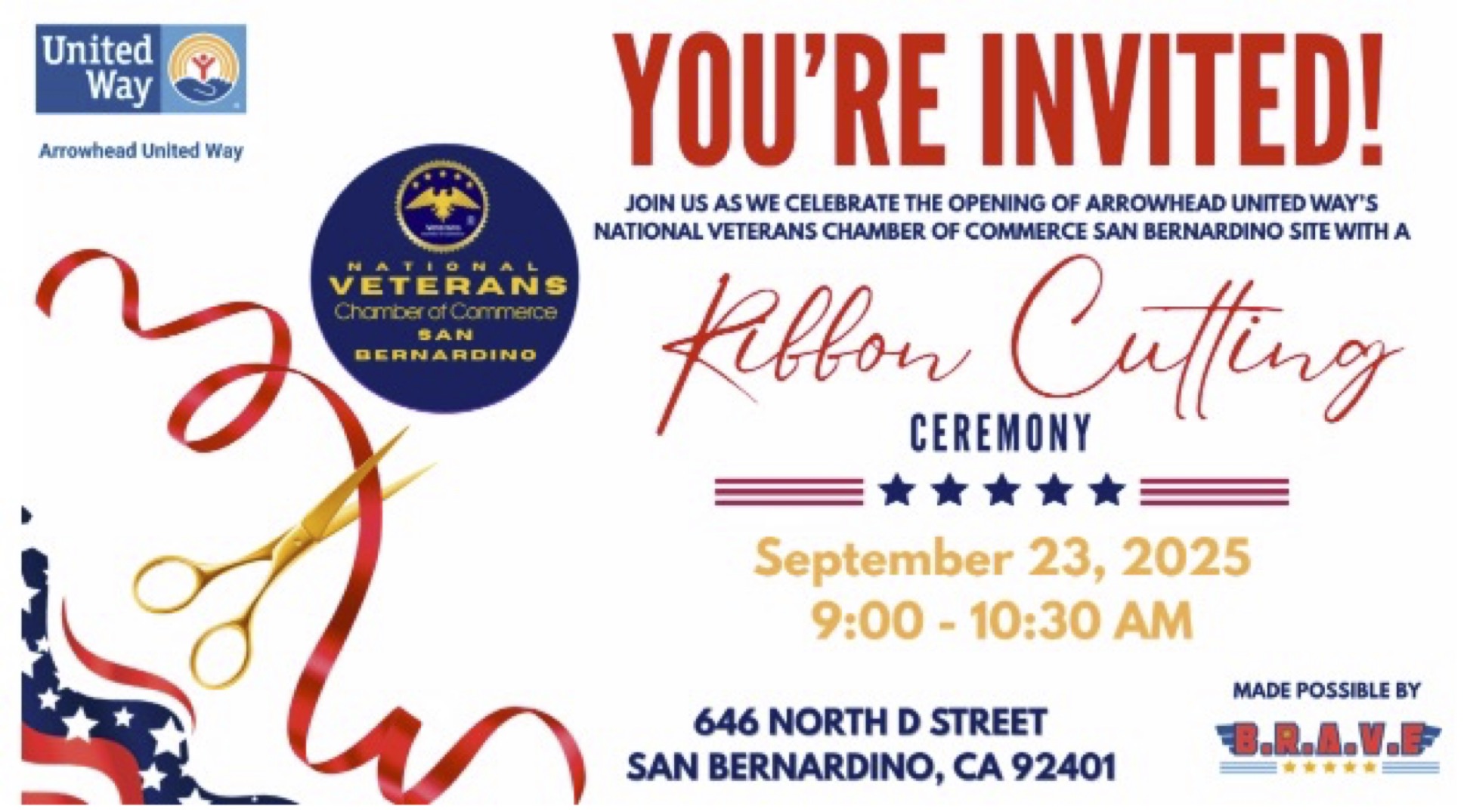 Arrowhead United Way announces the opening of its National Veterans Chamber of Commerce San Bernardino site, a veteran-led space located in the United Way Downtown San Bernardino office.